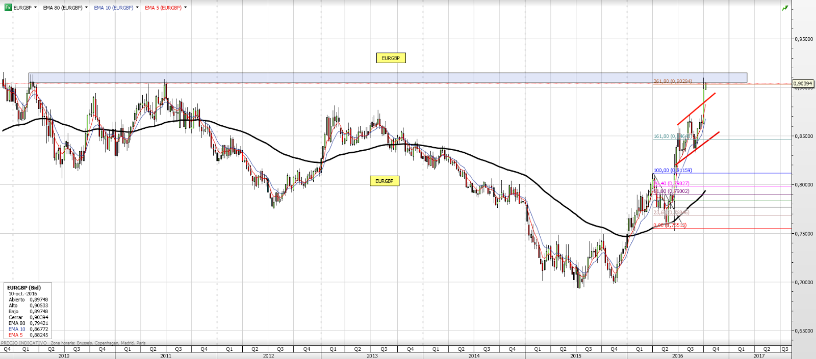 GBPJPY: La LIBRA sigue en lateral ante el YEN. (126,20 claves), por el Trader Marco Da Costa El GBPJPY se ha venido negociando a la baja durante la mañana europea de hoy miércoles, aunque ha logrado mantenerse dentro de su lateral de precios desde el día 12 de octubre, entra la zona de soporte de […]