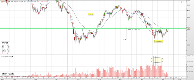 Técnicamente el fuerte rebote experimentado desde los mínimos del 2016, alrededor del 60% , está configurando una espectacular figura de vuelta de tendencia, este patrón estará terminado con la perforación con solvencia de los 2e por acción.